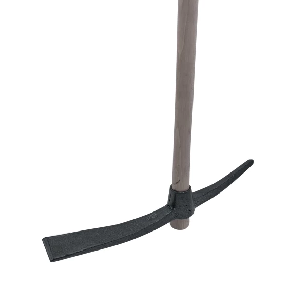 Zappa da 2,5 kg con occhiello rotondo PCS, lunga 45 cm. Questo attrezzo è dotato di un manico in legno da 90 cm. Questa zappa vi sarà utile per scavare trincee, praticare buche per la piantumazione o sradicare arbusti o alberi con il lato a punta, molto efficace su terreni duri e pesanti. Il lato a lama serve per smuovere il terreno, rompere le zolle, riempire una buca di piantagione o una trincea di irrigazione, ad esempio.