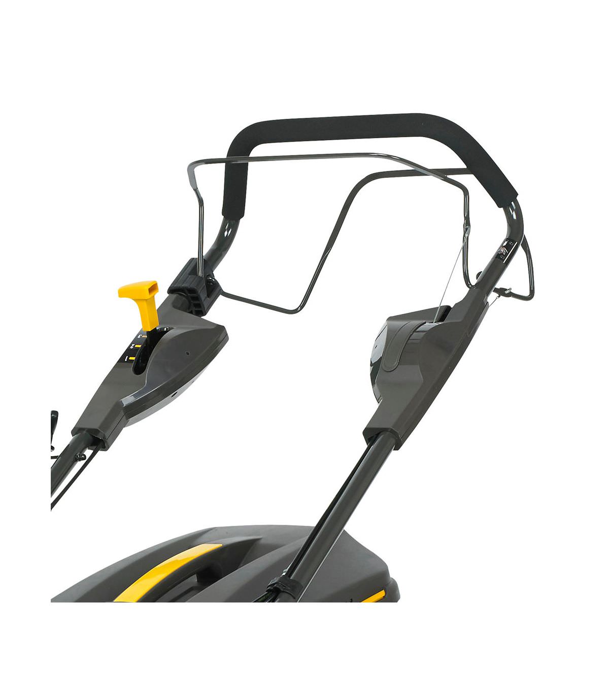 Il modello è dotato di un'impugnatura ergonomica per la regolazione dell'altezza, che consente di impostare l'altezza di taglio in modo rapido e semplice su sei diverse posizioni da 28 a 75 mm.